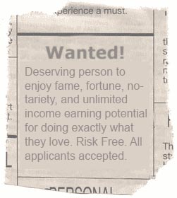 If you do see an ad like this – don’t answer it! The reality is that no one is going to offer us a job being our own boss doing exactly what we want. YOU are going to have to go out there and make that opportunity and then take it.